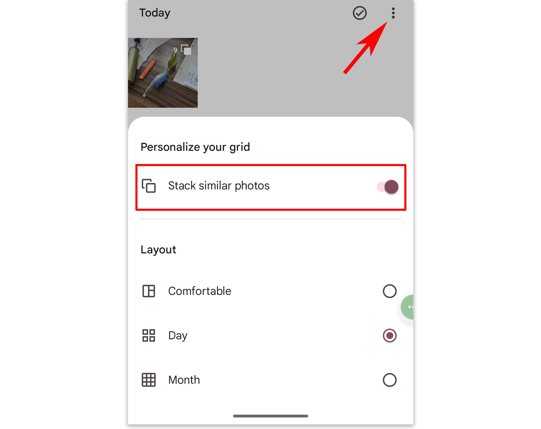 Để kích hoạt thì anh em cập nhật app Google Photos lên phiên bản mới nhất, sau đó mở app > menu 3 chấm cạnh dấu checkmark đầu tiên > bật tuỳ chọn Stack similar photos lên là được. Hoặc cũng có thể vào icon profile > Photo settings > Preferences > Stack similar photos để kích hoạt.